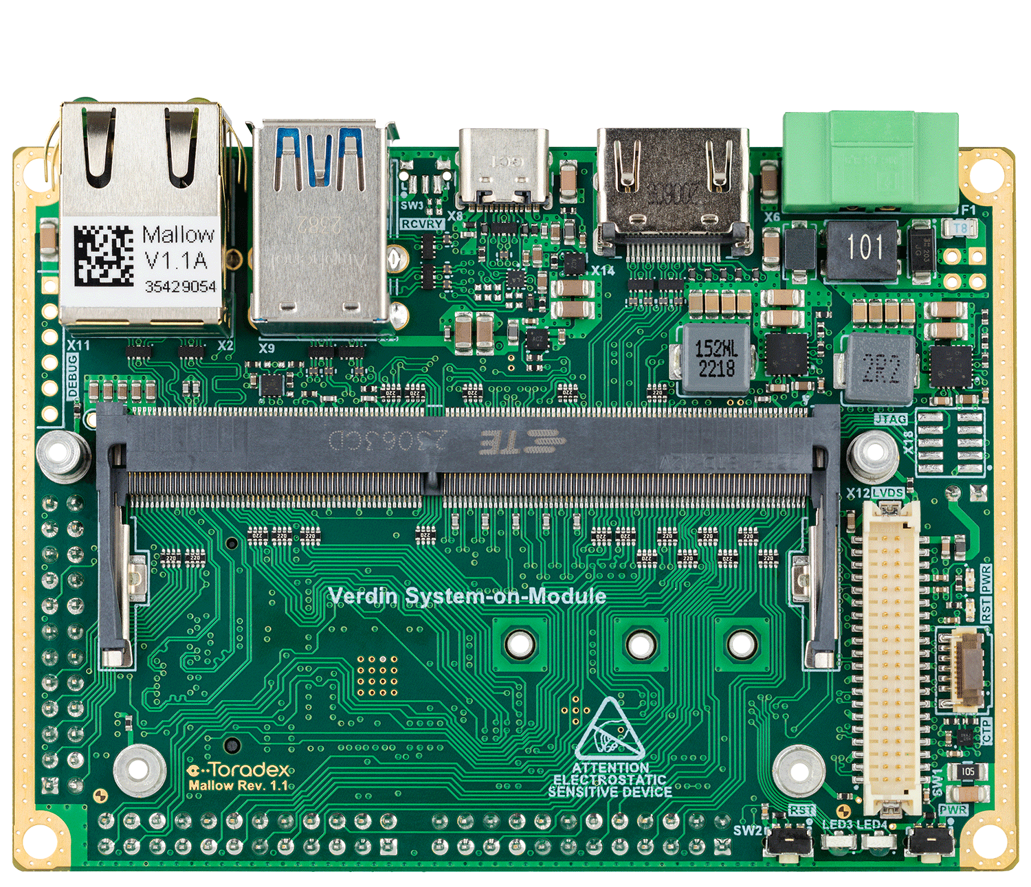 • Toradex Verdin iMX8 and AM62 family SOMs
